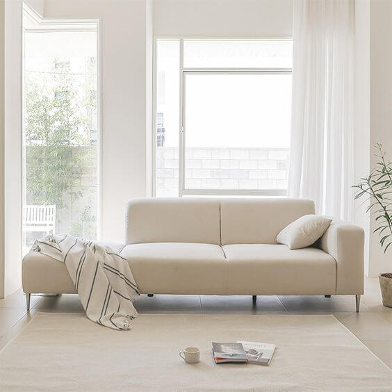 거실의 분위기를 좌우하는 소파는 크기가 크지 않고 적당한 것이 좋습니다. 현관에서 보았을 때 대각선 방향의 꼭짓점 부분에 해당하는 거실은 집안에서 '재물운'과 '생기'들이 모여드는 장소라고 여겨지고 있습니다. 이 장소에 소파를 두면 좋은 기운을 직접 받아 좋으니 현관에서 대각선 방향에 소파를 두는 것이 좋습니다. 만약 집의 구조상 대각선 위치가 어렵다고 하면 최대한 집에 들어오는 사람과 등을 보이지 않게 배치하면 됩니다. 소파가 현관을 등지거나 창문을 등지는 것은 좋지 않으며, 현관과 가까이 있거나 현관을 정면에서 바라보는 것은 흉하다고 합니다. 따뜻한 느낌의 패브릭 쇼파가 풍수적으로 좋습니다.