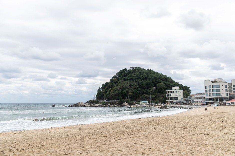 대나무가 빼곡한 섬 '죽도' 와 연결되어 있는데, 이 섬 이름을 따 죽도해수욕장이라 부릅니다. 해변에는 2km의 아름다운 모래사장이 길게 펼쳐져 있고, 모래사장 뒤로는 울창한 소나무 숲이 자리합니다. 수심이 낮고 경사가 완만한 편이라 어린이가 있는 가족 단위 피서객에게 사랑받는 곳입니다. 주변에 크고 작은 바위가 많아 바다밖시꾼들도 주로 찾습니다. 바다에서 서핑도 가능한데, 주변에 서핑 강습과 장비 대여를 하는 서핑샵이 여럿 있습니다. 걸어서 오를 수 있는 죽도봉 정상에 서면, 넘실대는 동해의 풍광이 파노라마로 펼쳐집니다. 서핑의 천국 죽도 해수욕장입니다.