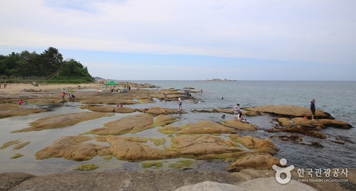 넓은 백사장과 수심 1m 안팎, 경사도 10도의 반달형 해안을 가진 아담한 해수욕장으로, 파도가 잔잔하며 지형상 천연 바람막이가 있어 낚시터로도 안성맞춤인 곳입니다. 근처 장호항에서 나오는 싱싱한 생선을 저렴한 가격으로 즐길 수 있습니다. 또한 주차장, 야영장, 화장실, 샤워장 등 편의시설이 비교적 잘 갖추어져 있으며, 2004년부터는 장호어촌체험마을로 지정 운영되어 각종 체험을 할 수 있습니다. 에메랄드빛 투명하고 아름다운 바다와 함께 스노클링, 스쿠버다이빙, 카누 타기 등의 해양스포츠도 즐길 수 있습니다.