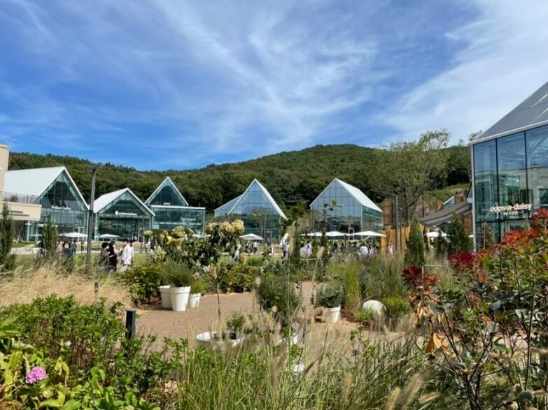 1층 '플레이빌' 잔디 광장이 있는 야외공간과 그 뒤로 10개의 투명한 '글라스빌'이 인상적입니다. 투명 유리를 통해 사계절 바뀌는 풍경을 그대로 감상할 수 있고, 주변을 감싸고 있는 바라산과 자연을 만끽할 수 있습니다. 글라스빌 앞으로 넓게 펼쳐진 플레이빌은 아이들이 놀기 좋은 놀이터, 물놀이 시설, 드넓은 잔디마당이 있어 아이들이 뛰어놀며 즐길 수 있는 공간이 되고, 주변의 산책길에는 1,000여 그루의 자작나무가 어른들의 힐링공간이 됩니다. 마치 동화 속 숲길을 걷는 듯한 느낌을 주는 곳입니다.