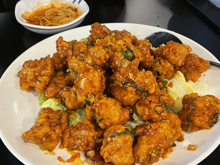 깐풍기 매콤하면서 느끼하지 않고 맛있습니다. 어른들 추천 메뉴입니다. 깐풍기에 연태고량주 추천입니다~!!