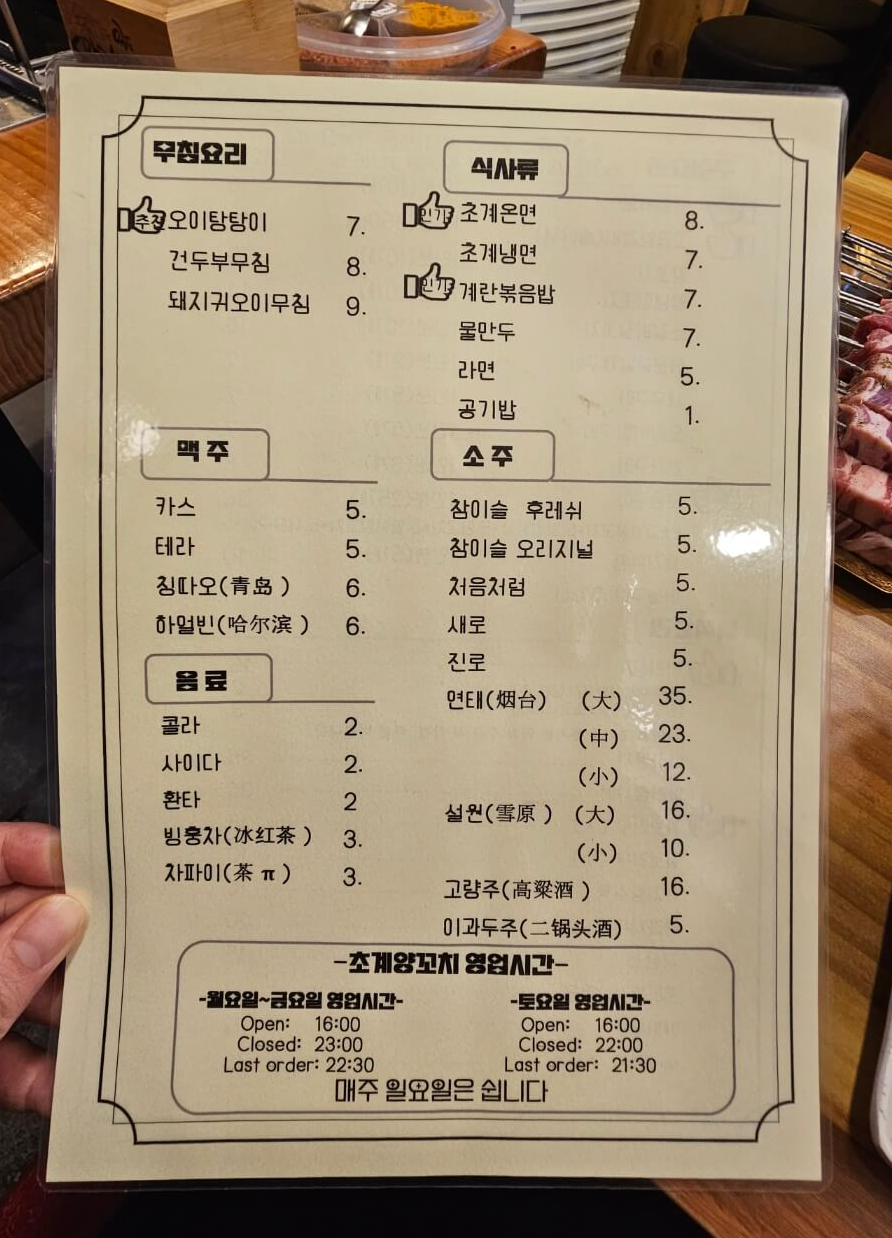 2. 안양 양꼬치 맛집 초계 양꼬치 <메뉴>