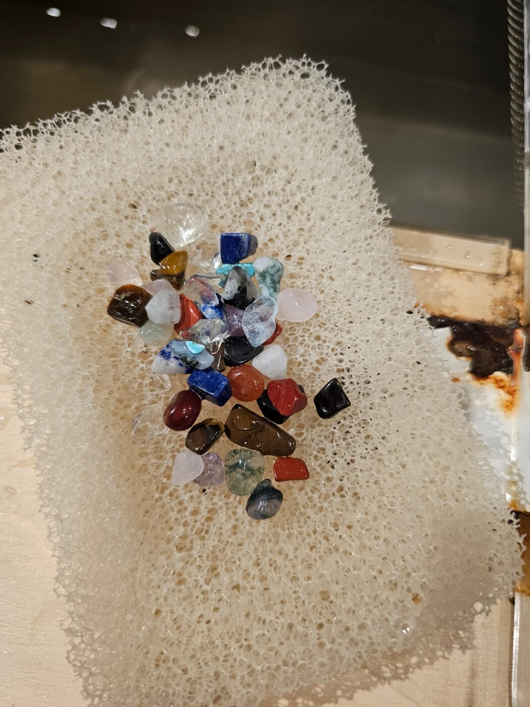 입구에 들어서면 수정에 대한 간단한 설명을 해주시는 분을 만날 수 있습니다. 설명과 함께 웰컴 기념품을 나눠줍니다. 아이샤 뺏지와 작은 돌들이 들어있습니다. 너무 빠르고 대충 말씀을 해주셔서 수정은 여러 가지 영향으로 다양한 색으로 나타나고, 그중 대표적인 게 자수정이라는 이야기만 기억납니다.