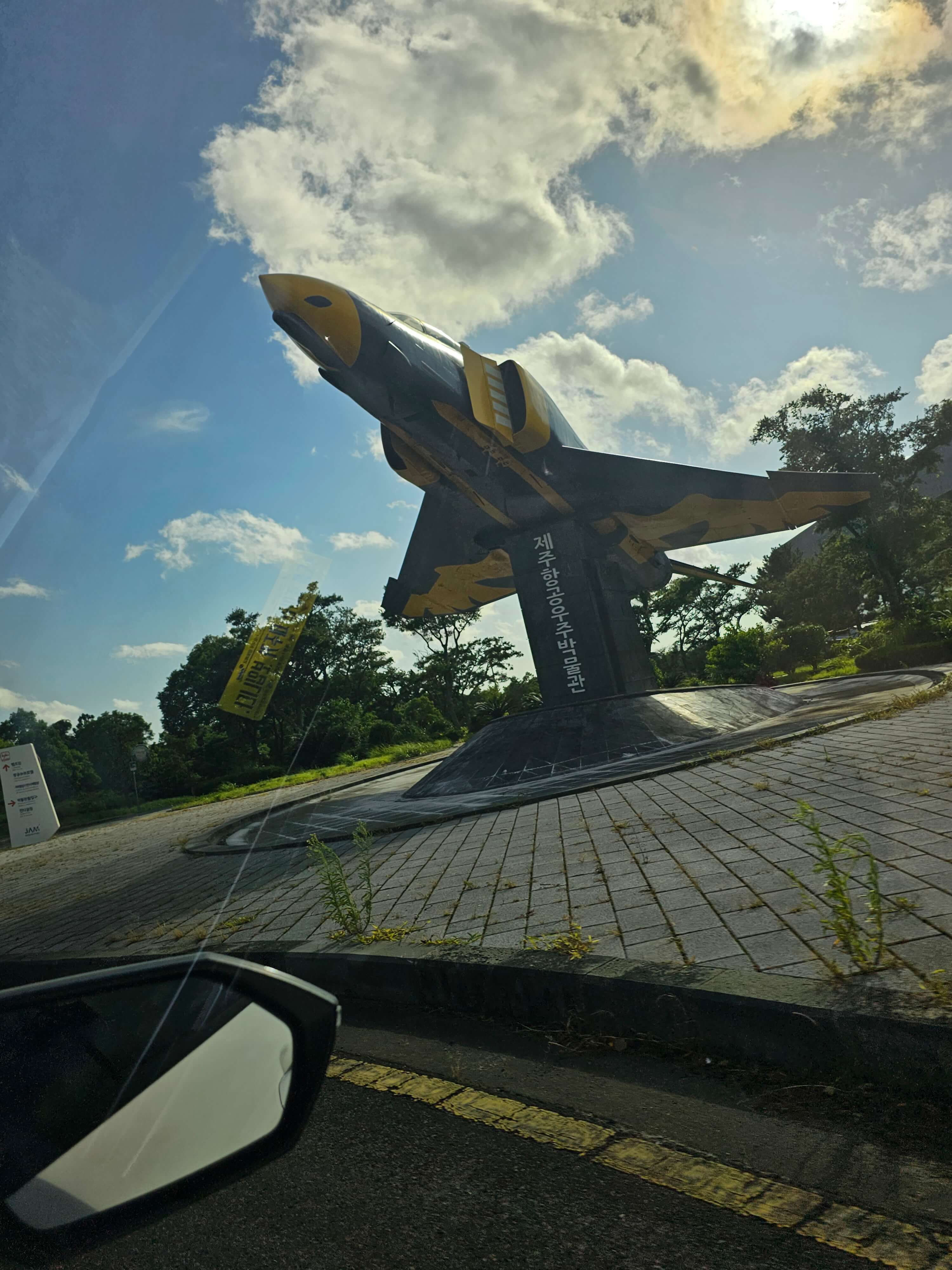 활주로를 모티브로 한 야외전시장에는 전투기, 수송기, 정찰관측기, 훈련기, 수륙양용기 등 총 13대의 실물 항공기가 전시되어 있으며, 대형 수송기와 헬리콥터 등 일부 항공기는 조종석 탑승 체험도 가능합니다. 이날은 비가 와서 차로 지나가며 관람해야 했습니다.
