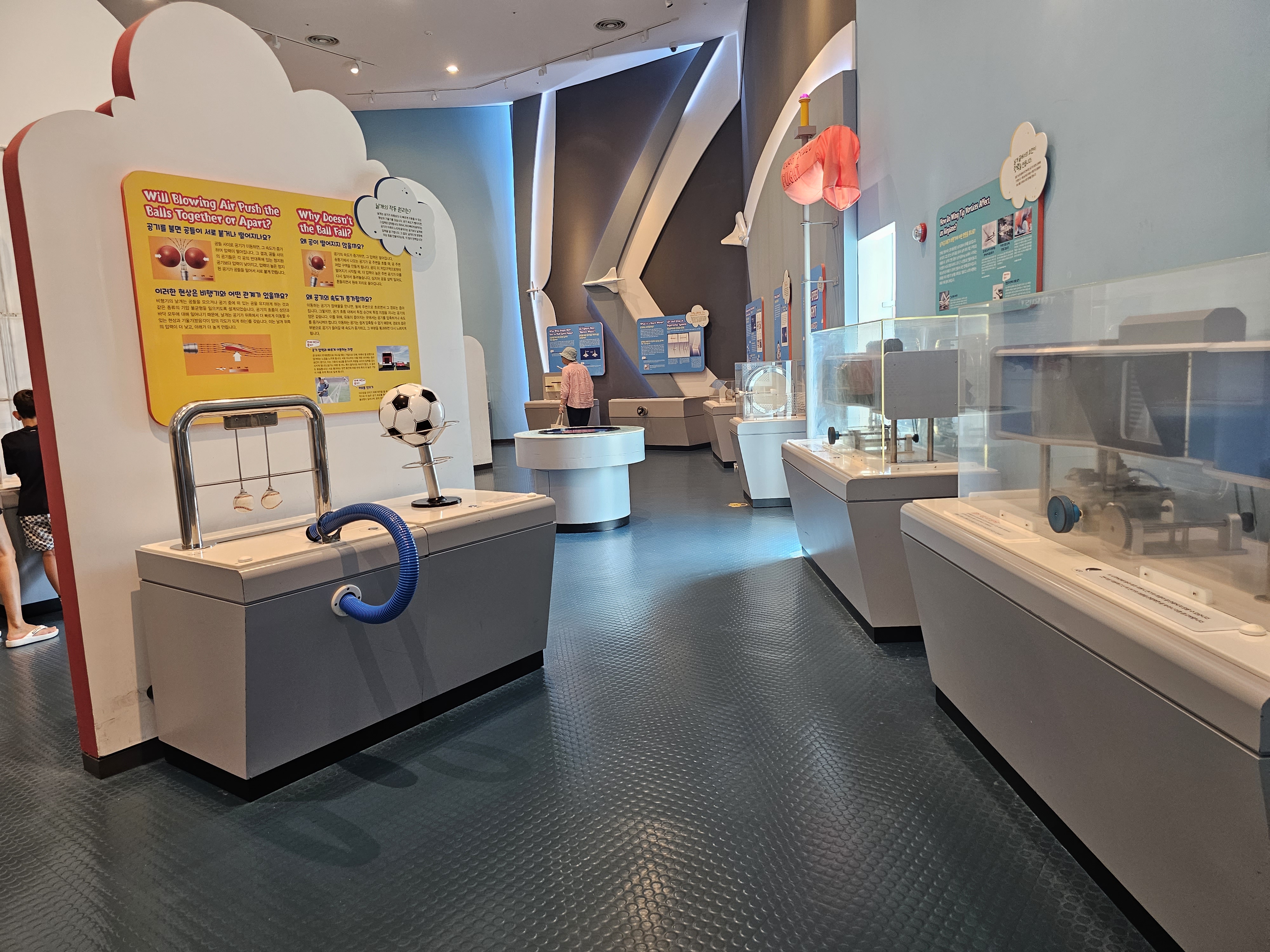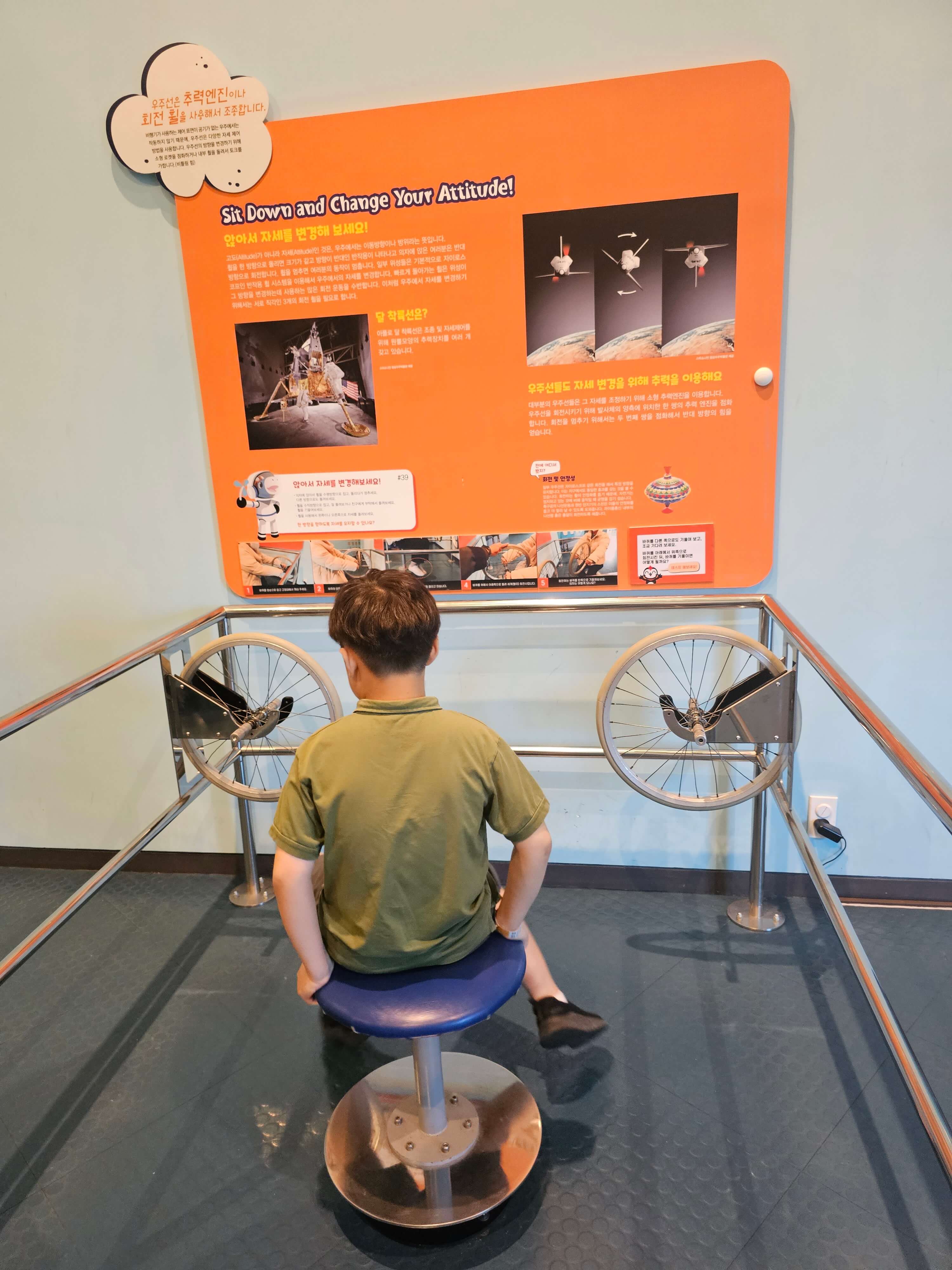 최첨단 항공기와 기구, 글라이더, 헬리콥터의 구조와 비행기 엔진, 항공 시뮬레이터 등을 통해 항공기에 적용되는 항공 과학을 배울 수 있는 곳입니다. 비행기 엔진의 실제 모습을 볼 수 있어 흥미롭고 아이가 파일럿복을 입어보고 비행기 조종석에 앉을 수 있는 공간이 있습니다. 시뮬레이션으로 비행기를 조종하며 가상 비행세계를 체험할 수 있고 드론 체험 게임기가 있어 아이가 좋아합니다. 비행기 조종을 한참 하고, 드론도 한참 움직여본 후 다음 사람을 위하여 이동합니다.