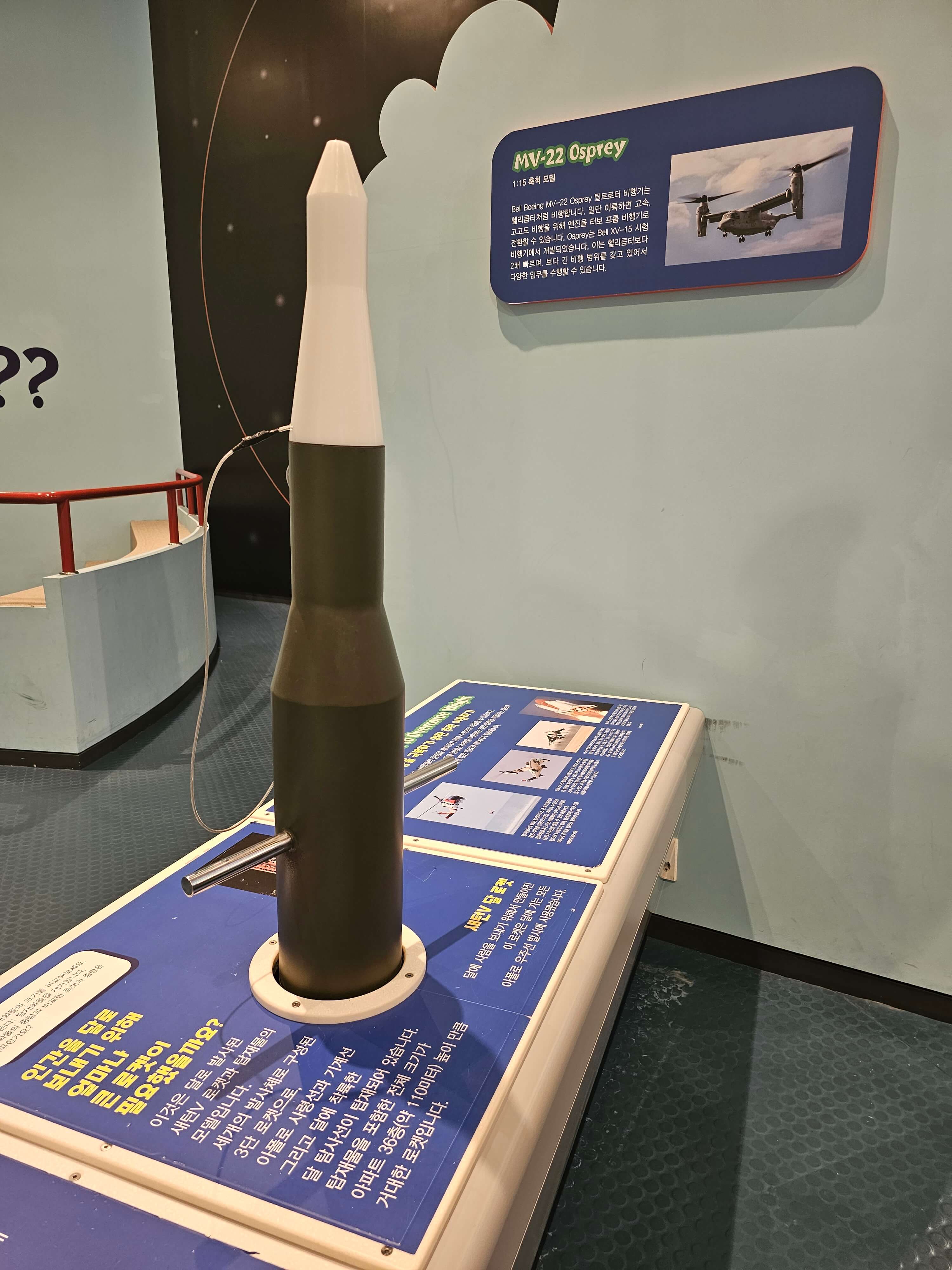 로켓의 축소 모형들이 전시되어 있고, 다양한 인공위성들도 만나볼 수 있으며 나로호의 실물 크기를 느껴볼 수 있습니다. 국제우주정거장에서 행해지는 다양한 우주 실험과 우주인들의 생활 (의, 식, 주) 알 수 있는 기회가 되었습니다. 우주복도 입어보고, 사진을 남길 수 있습니다.