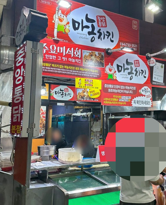 수요미식회에 나왔던 마농 치킨, 마농 오메기 통닭 / 마농 문어 통닭 등 치킨집도 눈에 띕니다. 마농은 제주말로 마늘이라는 뜻이라고 합니다. 그 밖에도 분식, 과일, 씨앗호떡 등도 있습니다.