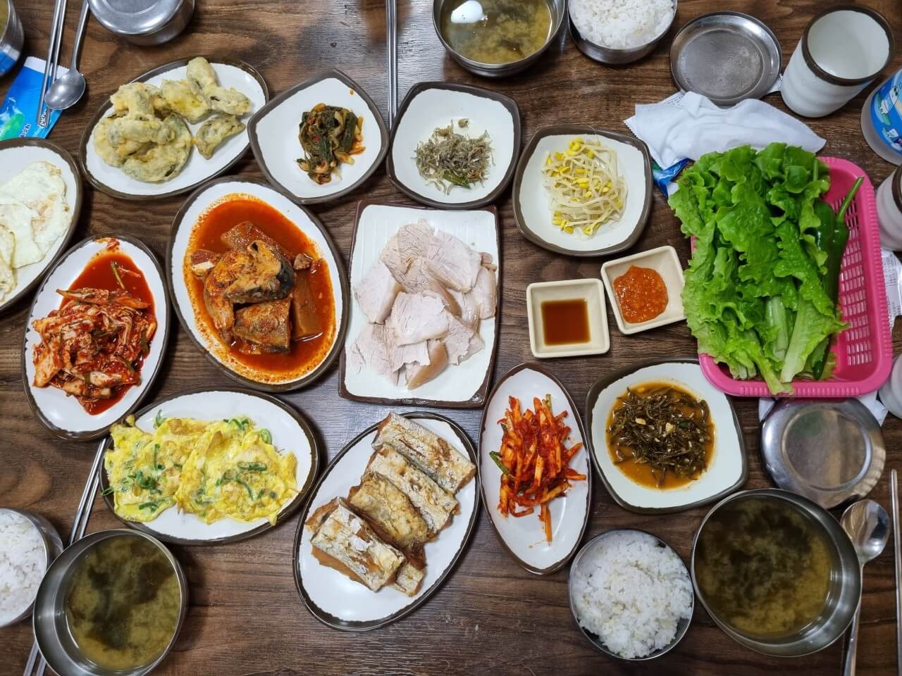 단돈 만 원으로 푸짐한 가정식 백반을 즐길 수 있는 현지인 추천 식당입니다. 저 상다리 부러지게 차려진 백반 정식이 만 원이며 심지어 반찬 더 달라고 하면 더 주신다고 합니다. 가성비 끝판왕입니다. 이 정도 반찬이면 밥 두 공기도 가능할 것 같아 보입니다. 고기 좋아하는 아들, 생선 좋아하는 신랑이 아주 신나게 그릇을 비워갈 것 같습니다. 계란에 튀김까지 아이와 함께 든든한 식사를 할 수 있을 것 같아 서핑 하러 가기 전 점심 메뉴로 선택하였습니다.