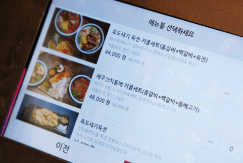 제주스런정식 19,000 / 홍백돔베고기세트 48,000 / 흑도새기 육전 커플세트 44,000 /