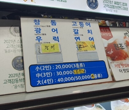小(2인) -3종류 20,000 / 中(3인) - 3종류 30,000 / 大(4인) - 4종류 50,000