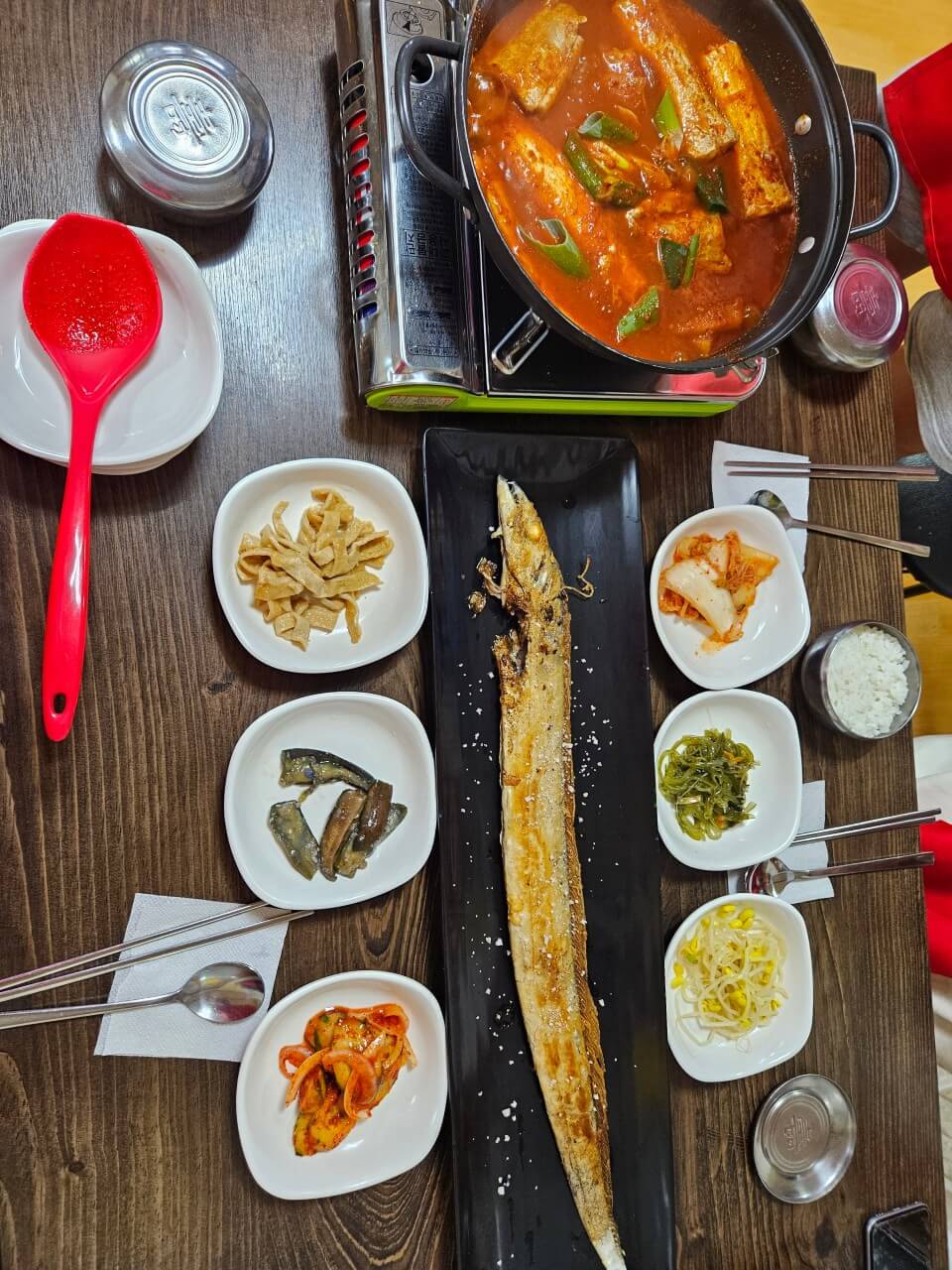 도민이 추천하는 갈치조림 가성비 맛집입니다. 대표 메뉴 갈치조림 주문 시 소/중/대 상관없이 통갈치 구이 1마리가 서비스로 나와 든든한 식사를 할 수 있는 곳입니다. 갈치가 통통하고 양도 푸짐하게 들어있으며, 매콤, 달달, 칼칼함의 삼박자를 겸비한 갈치조림이라고 합니다. 아이와 함께이기 때문에 갈치구이 한 마리가 서비스인 점은 선택의 여지가 없게 만듭니다. 게다가 가격도 저렴하여 여타 갈치조림 집과 비교할 수 없습니다. 갈치조림을 좋아하는 신랑을 위해 한 끼는 갈치조림 맛집으로 선정하였습니다.