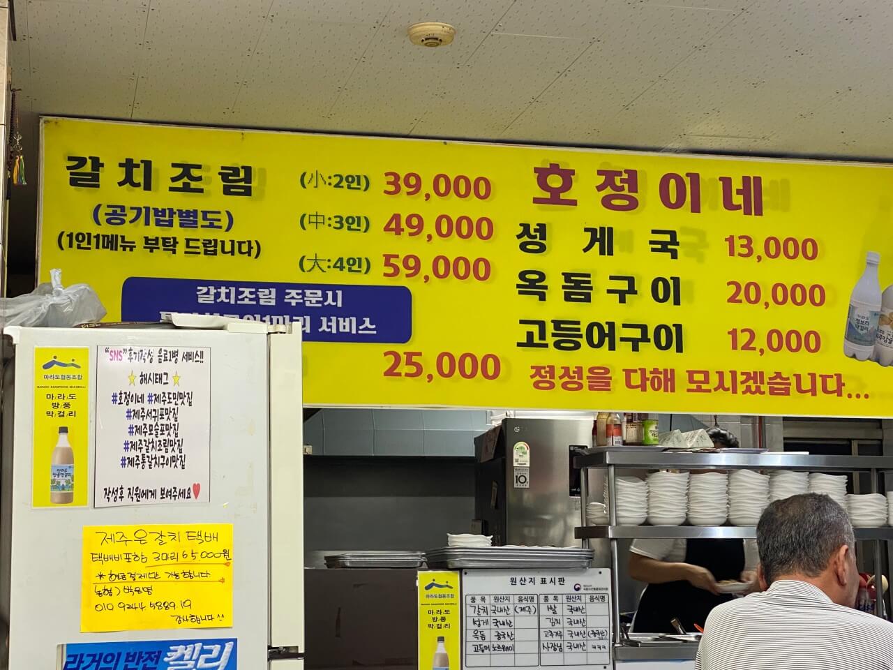 갈치조림 小 (2인) 39,000 / 中 (3인) 49,000 / 大 (4인) 59,000