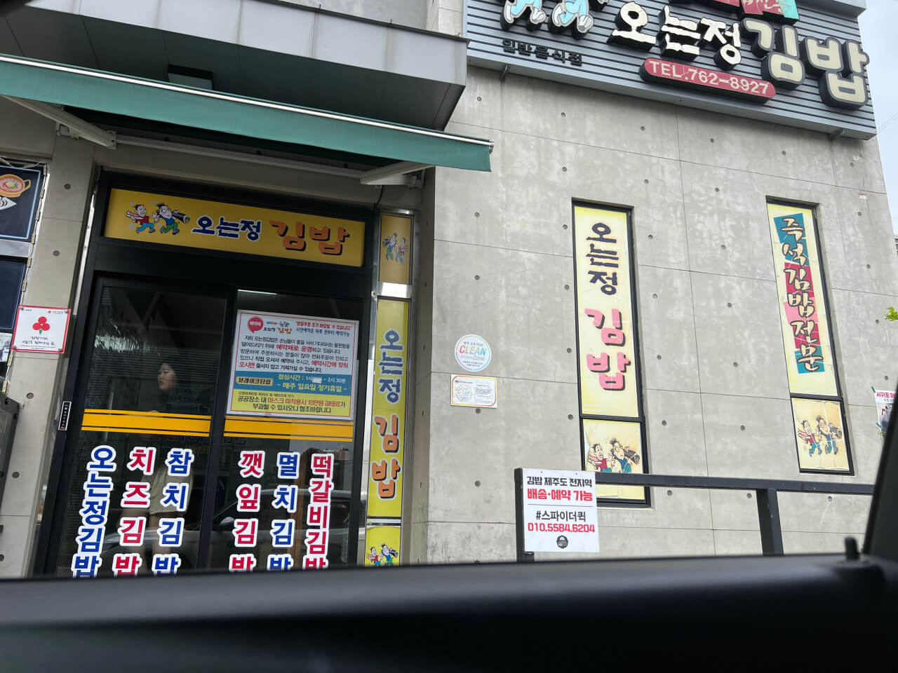 수많은 연예인이 다녀간 제주도 3대 김밥 오는정 김밥입니다. 전화를 수백 통 해야 전화 연결이 되고 예약을 할 수 있다는 제주에서 가장 유명한 김밥 집인 것 같습니다. 김밥은 2줄부터 판매하고, 예약시간 30분 경과 시 예약이 취소될 수 있습니다. 후덜덜... 사전 예약 (하루 전) 및 당일 예약도 가능합니다. 김밥이 아주 귀한 대접을 받는 곳인 것이 분명합니다. 김밥은 테이크아웃만 가능하며, 바로 옆집 꼬란카페에서 라면이나 음료 주문 시 김밥을 먹고 갈 수 있다고 합니다. 저희는 들려서 예약하고 올레 야시장을 둘러볼 생각입니다.
