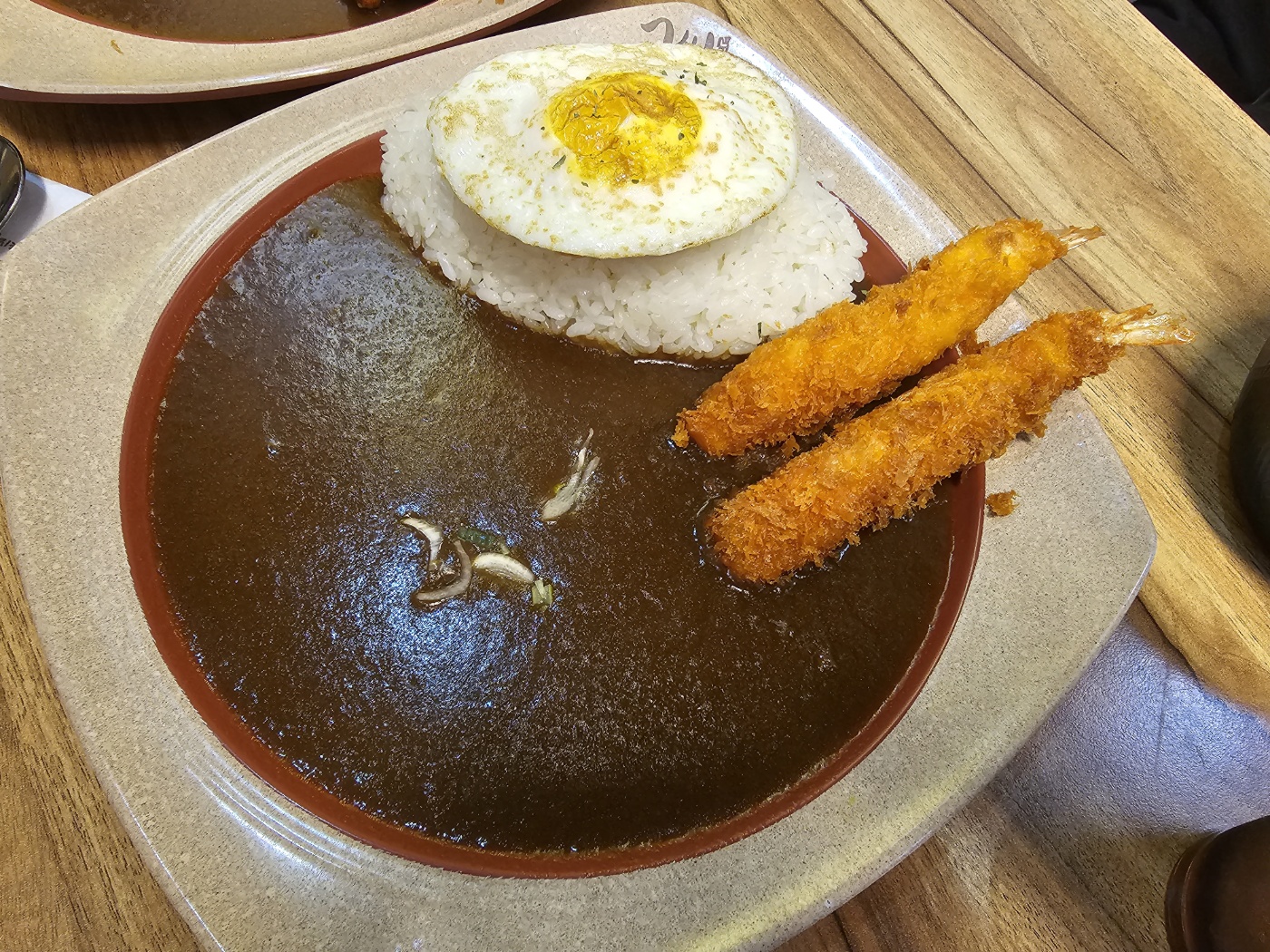 스페셜카레에 원래 계란후라이가 올라가는 것인지 서비스로 주신것인지 모르겠지만 스페셜 카레에도 계란후라이 이불을 덮은 밥이 나왔습니다. 치즈스페셜세트는 가격이 1,000원 차이이면서 돈까스 or 치즈롤까스만 다를 뿐 다른 구성은 똑같았습니다. 새우튀김카레는 밥+계란후라이에 새우튀김 두마리의 단촐한 구성입다. 아이들과 함께라 매운맛은 선택의 여지 없이 0고 뿐 입니다....