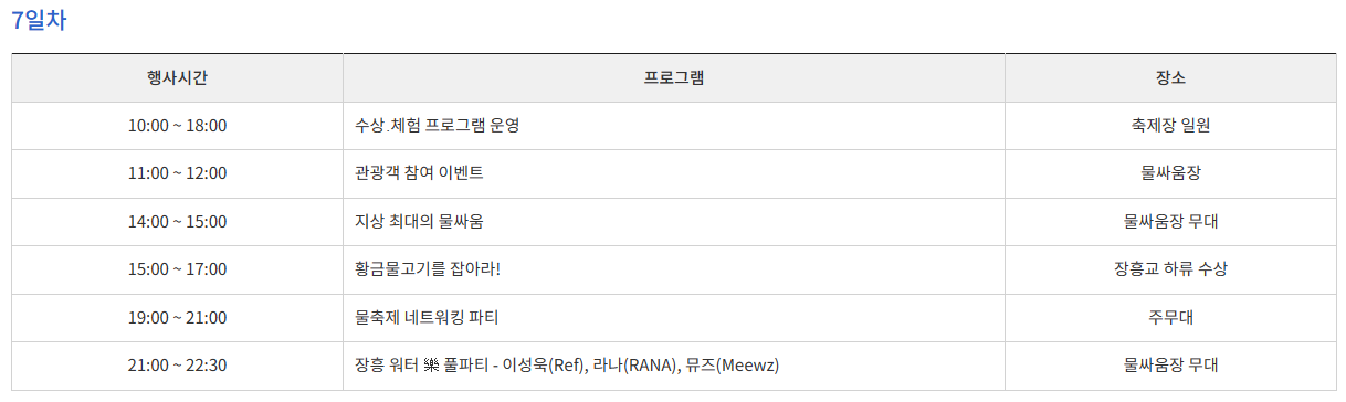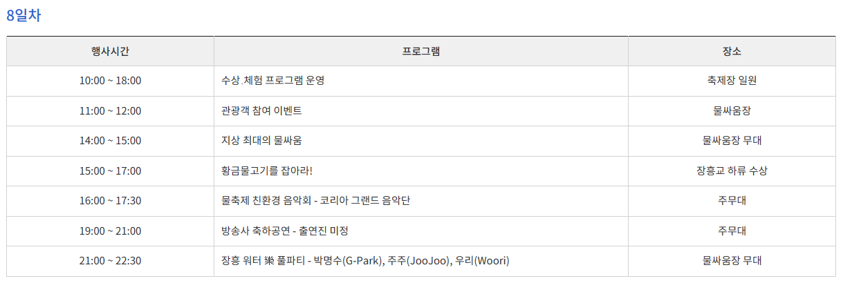 2. 정남진 장흥 물축제 <행사 일정>