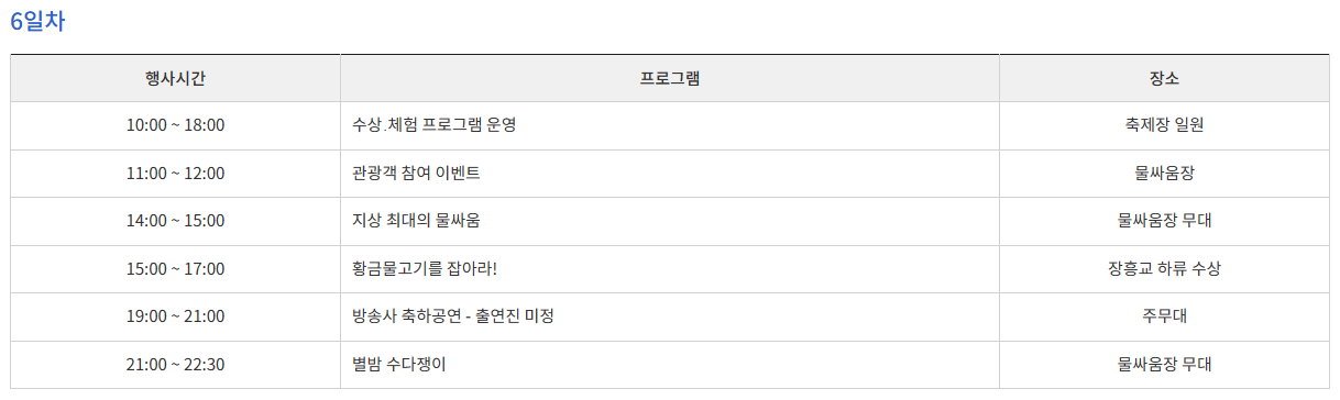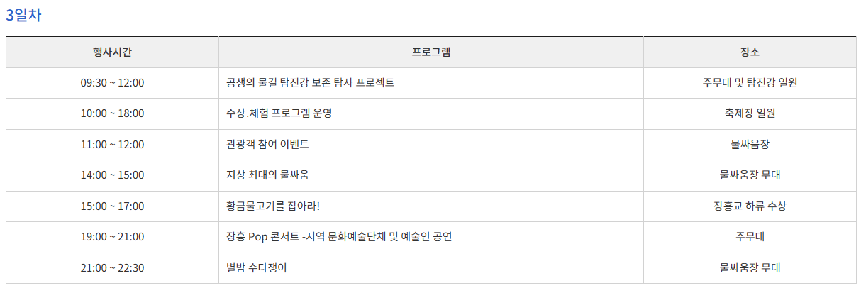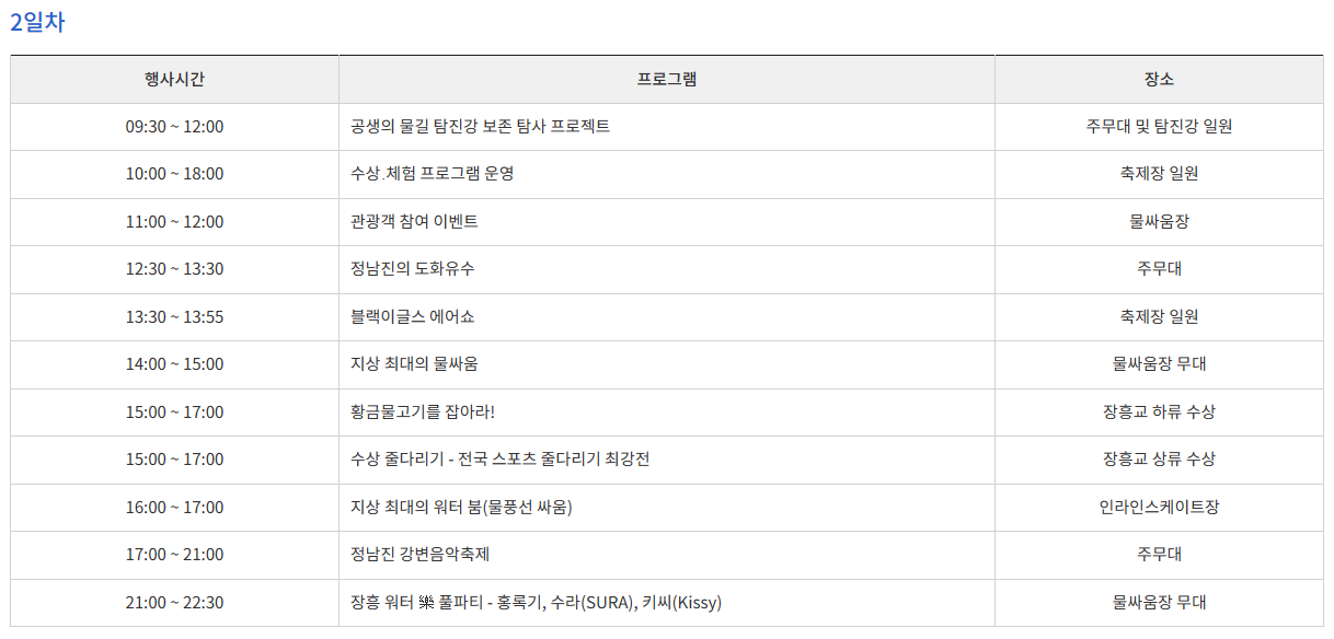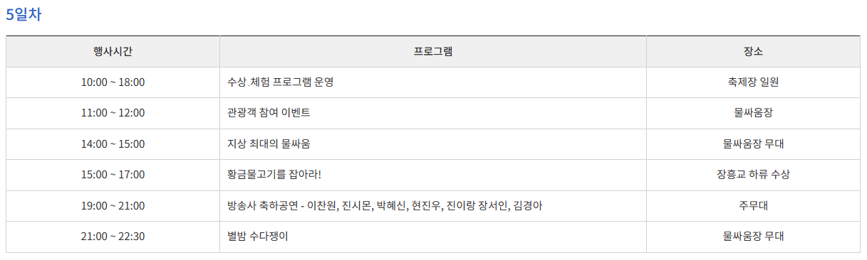 2. 정남진 장흥 물축제 <행사 일정>