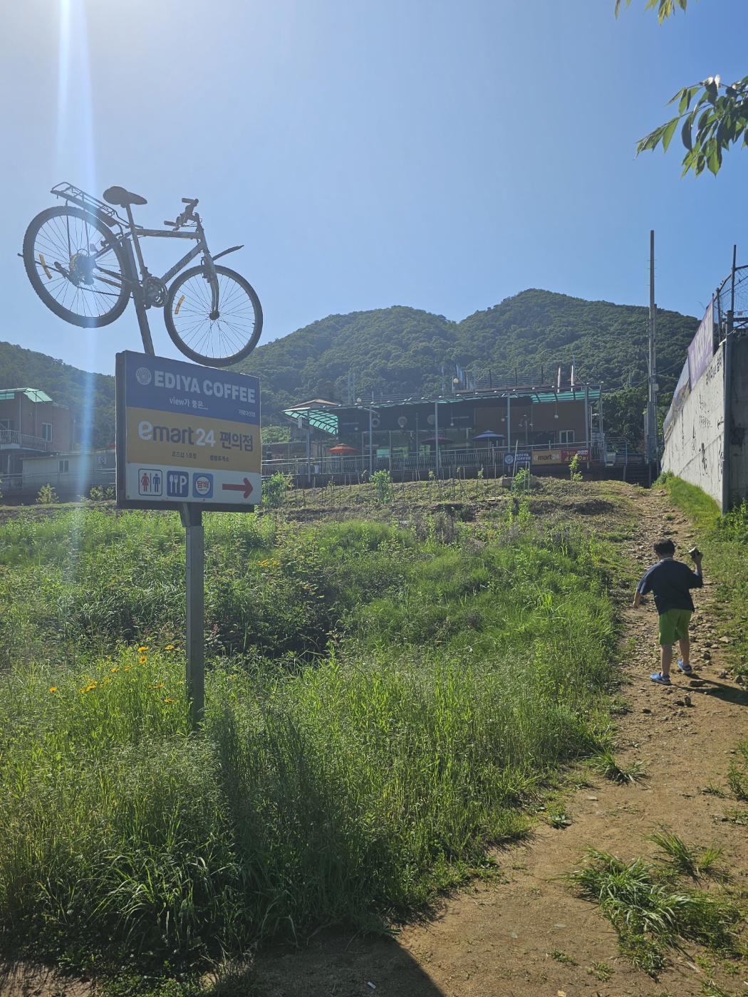 커피도 커피이지만 여긴 뷰가 더 예술입니다. 시간이 조금 여유로웠다면 아들과 함께 아이스 아메리카노를 음미하며 북한강변을 산책하고 싶었지만 어서 돌아가 주말을 마무리해야 하기에 살짝 둘러보고만 돌아와야 했습니다. 이날은 날씨가 너무 화창하고 좋아서 모든 게 다 푸르게 푸르게 예뻐 보여 발길을 돌리기가 힘들었습니다~ 아들은 자전거도로로 내려가 여기저기 식물들 사진도 찍고 꽃도 감상 하더니 더운 줄도 모르고 춤을 추며 뛰어다닙니다. 여기 마음에 든다는 산남의 몸짓? 인가 봅니다~^^