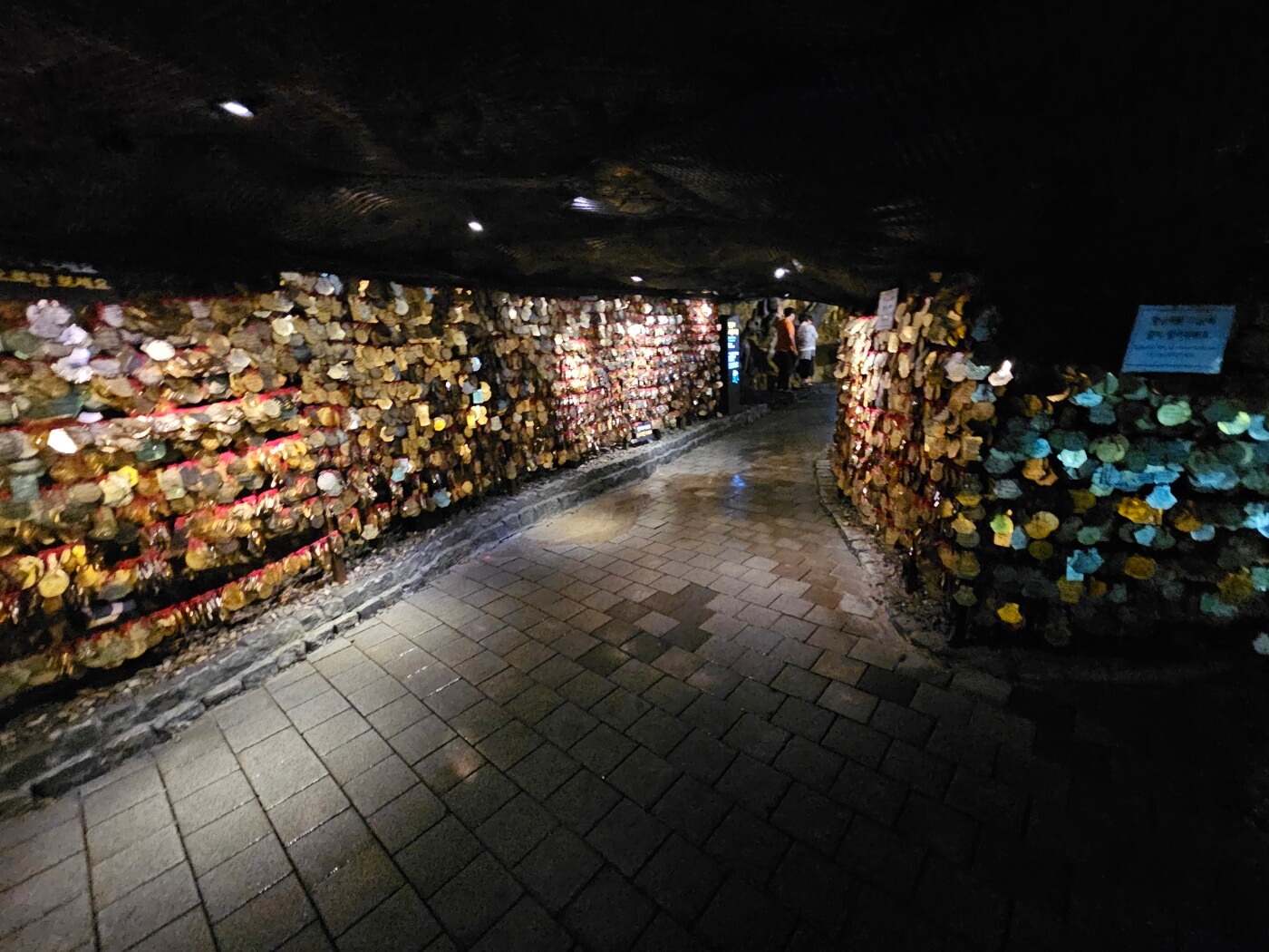 소망의 초신성은 2015년 한 해 동안 광명동굴을 찾은 방문객들의 소망을 적은 4219개의 황금패로 만들어졌다고 합니다. 천장에 크고 멋진 황금빛 별이 반짝입니다. 풍요의 여신은 풍요의 뿔에 있는 황금주화를 만지면 부와 행복이 온다고 적혀 있습니다. 부와 행복을 기원하며 우리 모두 한 번씩 만져보고 왔답니다~^^ 황금패 소망의 벽은 황금패에 소망을 적어 줄에 걸어놓은 길입니다. 많이도 달려있었습니다. 이날 아들과 소망을 적어보고 싶었는데 재고 소진으로 참여할 수 없어 아쉬웠습니다. 기념품샵에 황금패 구입, 소망의 벽이 있으니 거기서 구입하셔도 됩니다. 황금패 가격은 5,000원 입니다.