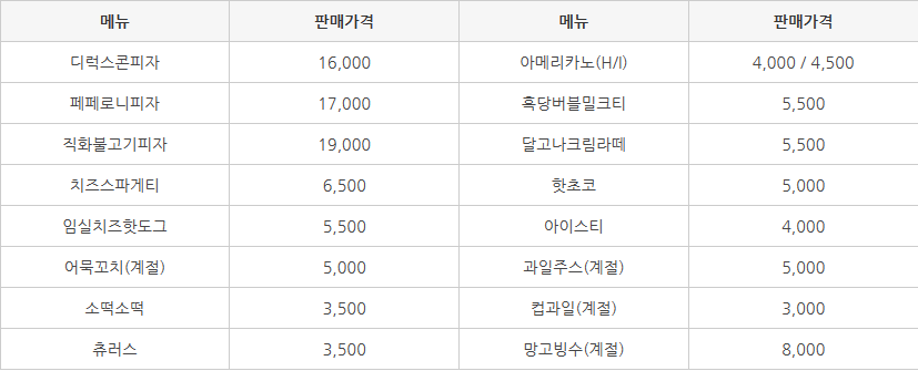 노천카페는 야외에서 간단하게 피자와 간식으로 요기할 수 있고, 음료도 종류별로 판매하고 있습니다. 주차장에서 동굴 입구까지 걷다가 잠시 쉬어가는 공간으로 잠시 앉았다 가셔도 좋을 것 같습니다. 이날은 비가 와서 테이블과 의자가 다 젖어있었기에 이용하는 사람이 많지 않았습니다.
