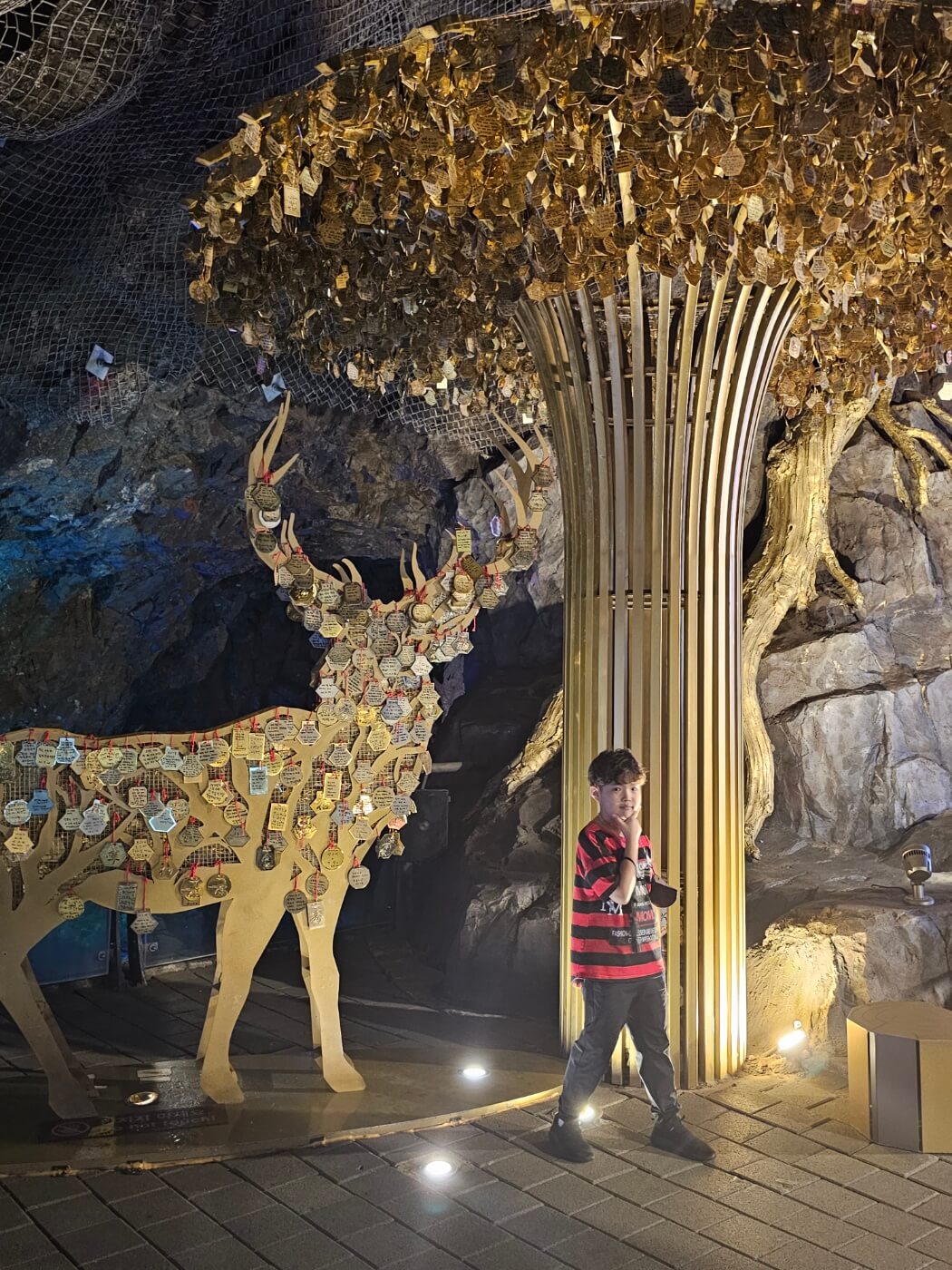 동굴 아쿠아월드도 멋집니다. 부와 복을 기원하는 황금 물고기들에게 소원을 빌어봅니다~^^ 어두운 공간에서 은은하게 빛을 내는 수족관과 그 안의 형형색색의 물고기들이 장관을 이룹니다. 이곳에 꼬마 손님들이 가장 많이 머물렀던 것 같습니다. 작은 물고기부터 철갑상어, 피라냐 등 여러 물고기들을 만날 수 있는 공간입니다.