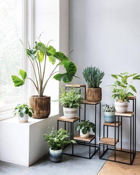 거실에 생기 있는 나무나 큰 화초, 테이블의 작은 꽃들은 집안의 품의를 만들어 주는 요소로 가족 구성원의 생기와 마음의 안정을 만들어 줍니다. 관엽식물을 놓아두면 좋은 기운을 북돋아 주는 데 도움이 됩니다. 사회생활을 하는 가족 구성원의 키보다 큰 식물은 기를 눌러 좋지 않다고 하니 피하는 것이 좋고, 거실에 놓는 화분은 너무 화려하거나 무거운 소재를 이용하게 되면 기의 흐름을 방해하게 되어 출세에 영향을 줄 수 있으므로 최대한 심플한 분위기로 꾸미는 것이 좋습니다. 화분을 에어컨 앞에 놓으면 찬 기운을 내뿜는 냉한 성질을 중화시켜주는 역할을 하며, 곡선의 흐름이 좋은 난을 두면 흉한 기를 중화시키고 제압하는 데 도움을 줍니다.