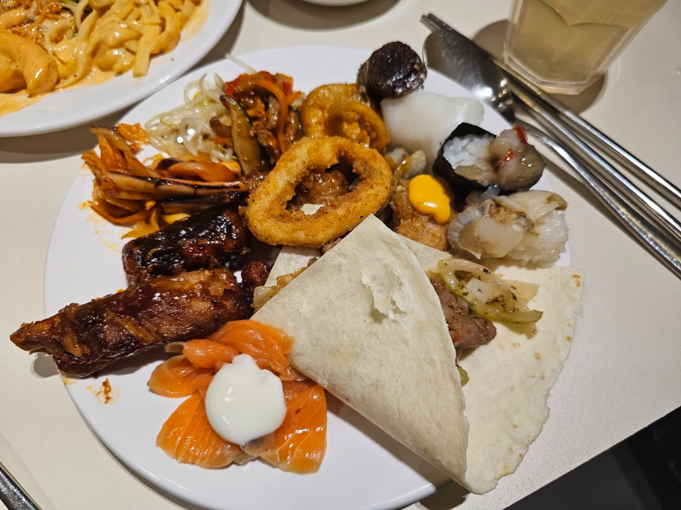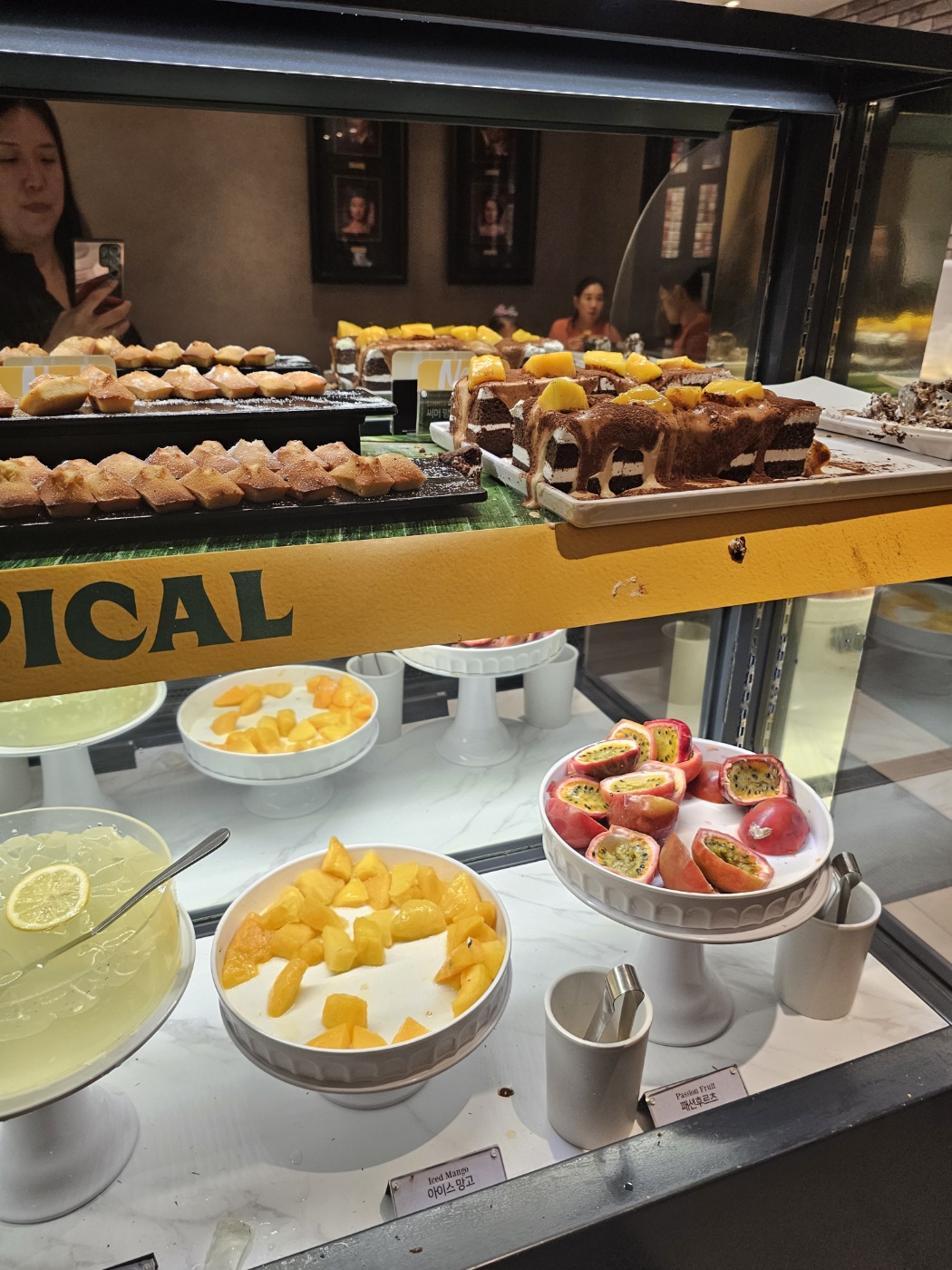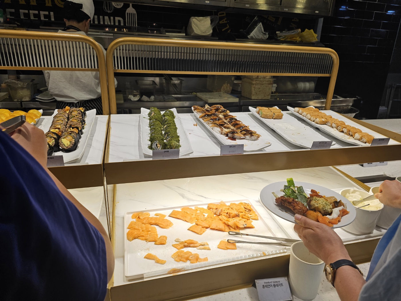 연어 가마살 스테이크, 스페니시 감바스 아 라 프란자 같은 지중해를 대표하는 요리가 준비되어 있고, 더운 날씨를 날려버릴 디저트로 달콤한 애플망고 요구르트 라씨, 서머 망고 티라미수 등도 있습니다. 이 밖에도 초밥&스시, 튀김류, 떡볶이, 순대, 볶음밥, 파스타, 리조또, 피자, 또띠아, 스프, 국물, 샐러드, 후식까지 다양한 종류의 메뉴들을 맛볼 수 있었습니다.