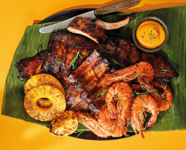 · 트로피컬 파인애플 폭립- 육즙이 풍부한 돼지고기와 열대 과일인 파인애플의 달콤함이 조화를 이룬 파인애플 폭립입니다. 부드러운 갈비를 천천히 익혀 육즙이 풍부하고 뼈가 살에서 쑥 빠져나올 만큼 부드럽습니다. 라고 소개하지만 뼈가 쏙 빠져나올 정도는 아닙니다. 부드럽고 맛이 있어 고기 안 먹겠다던 아들이 맛있다고 좋아합니다~^^
