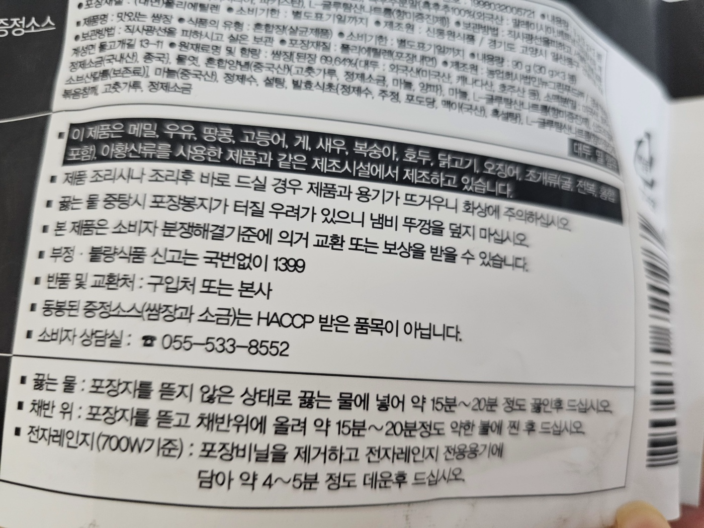 겉 포장지에 쓰여있는 조리 방법 입니다.