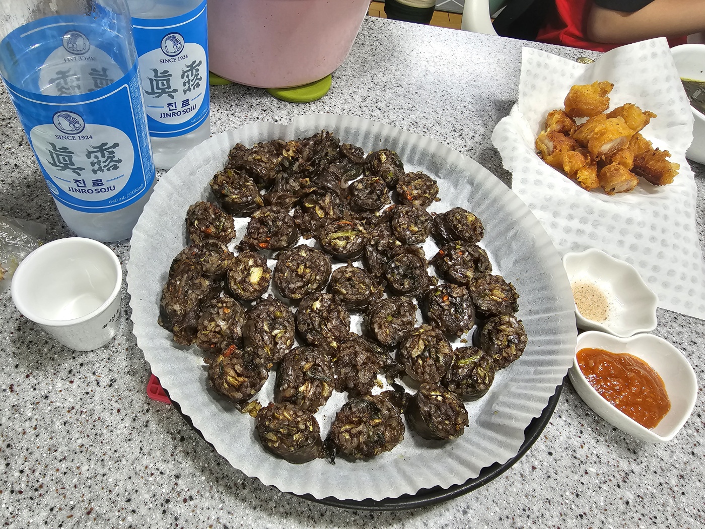 7. 암뽕순대 : 돼지 막창으로 만든 순대와 새끼보(자궁, 암뽕)을 함꼐 내놓는 음식.