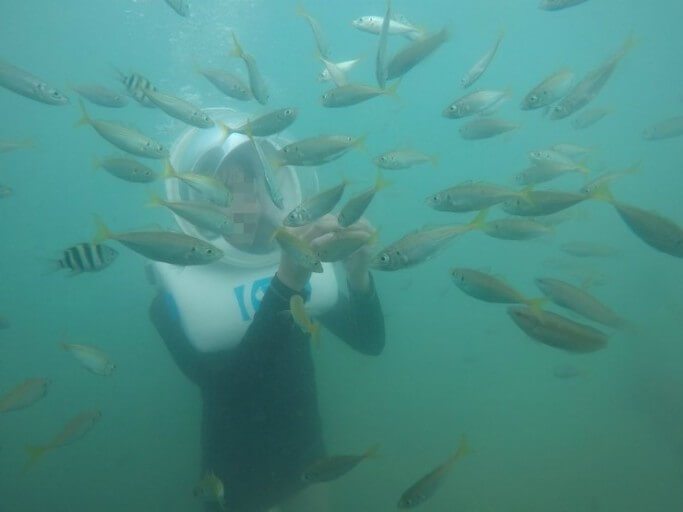 씨워크는 산소통을 매지 않고, 수경을 쓰지 않아도 헬멧 안에는 산소가 가득 차 있어 물 한 방울 묻을 염려가 없어 화장을 해도 체험이 가능하다고 합니다. 비교적 안전하게 바닷속으로 들어가 수중 구경을 할 수 있을 것 같아 아이와 바닷속을 거닐며 진귀한 장면을 탐험해 보고 싶습니다.