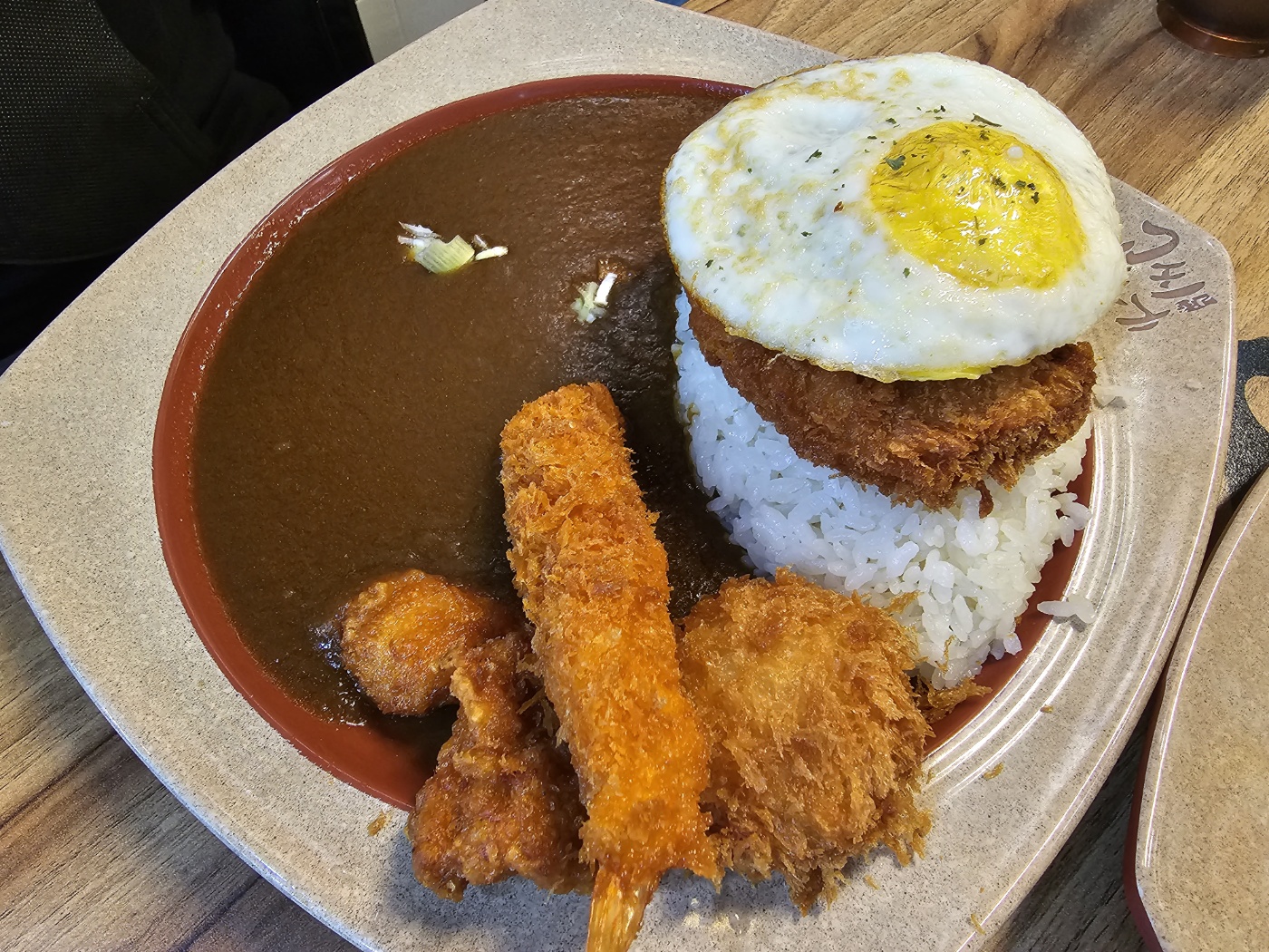 스페셜카레에 원래 계란후라이가 올라가는 것인지 서비스로 주신것인지 모르겠지만 스페셜 카레에도 계란후라이 이불을 덮은 밥이 나왔습니다. 치즈스페셜세트는 가격이 1,000원 차이이면서 돈까스 or 치즈롤까스만 다를 뿐 다른 구성은 똑같았습니다. 새우튀김카레는 밥+계란후라이에 새우튀김 두마리의 단촐한 구성입다. 아이들과 함께라 매운맛은 선택의 여지 없이 0고 뿐 입니다....
