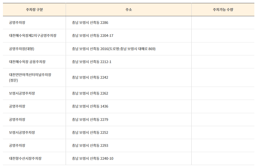 보령머드축제 기간에 대천해수욕장을 찾는 사람이 상당히 많습니다. 주차장이 여러 곳에 위치해 있으니 위 주차장 참고하시어 편하게 주차하시기 바랍니다.